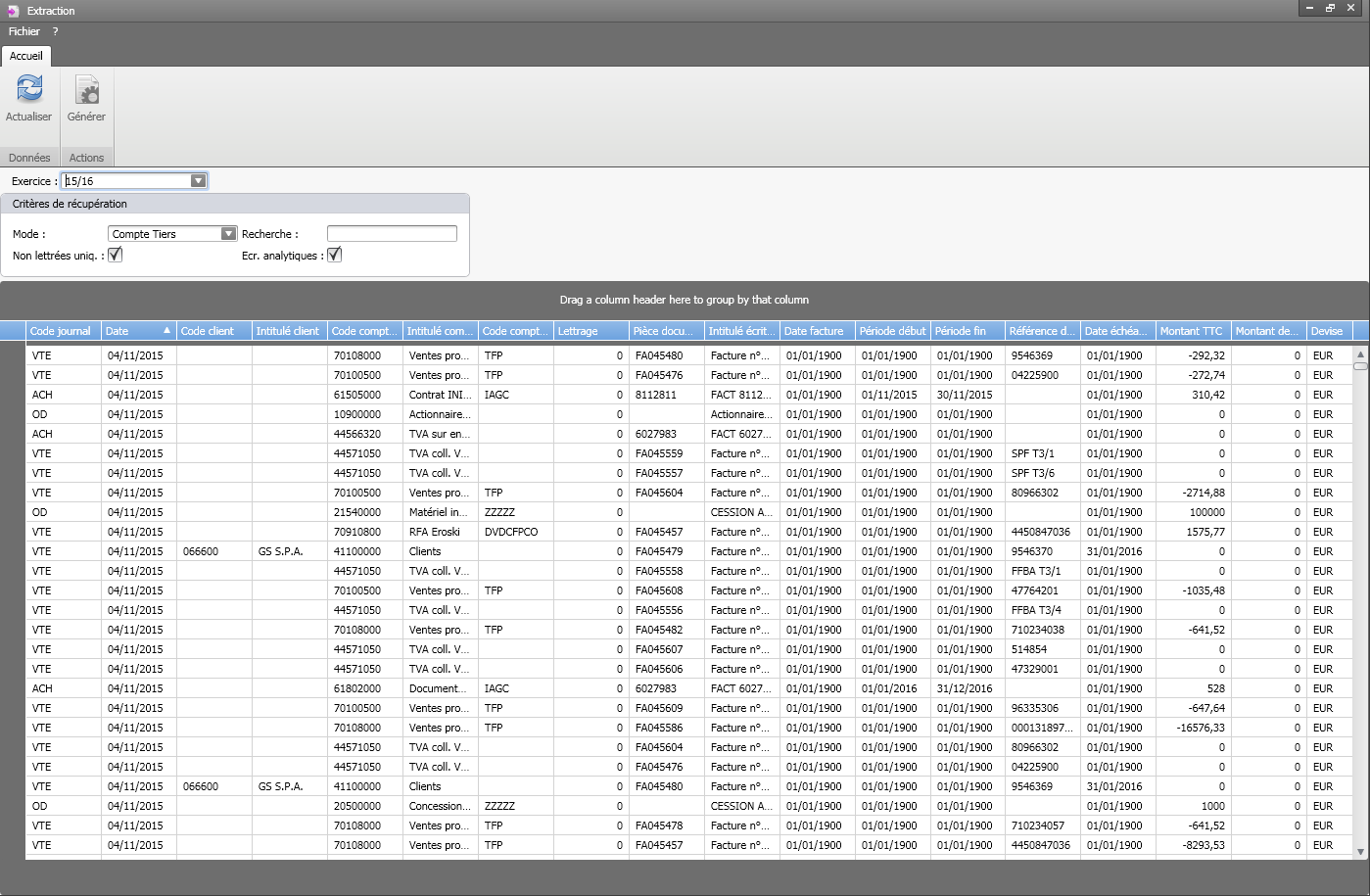 - 3 modes de sélection des écritures : Tiers, Compte Général, Compte Analytique.