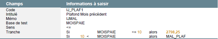 • IJ_PLAF1 : reporter les valeurs en orange du tableau ci-dessous :
