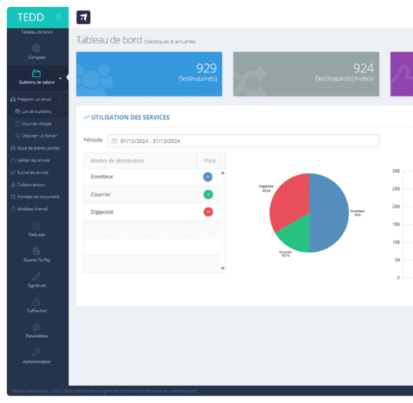 En partenariat avec l’éditeur de solutions de dématérialisation Flowwa et la solution TEDD Bulletins, Pilote Solutions vous aide à dématérialiser vos bulletins de paie et à les distribuer en toute sécurité dans le coffre-fort numérique Digiposte, ou par courrier pour les salariés qui le souhaitent.